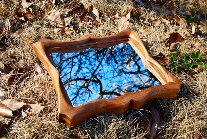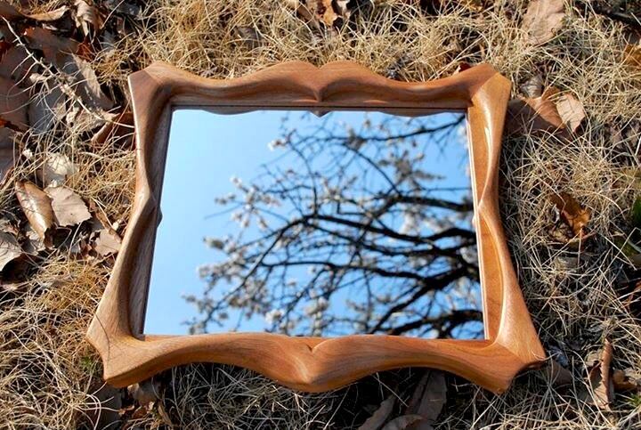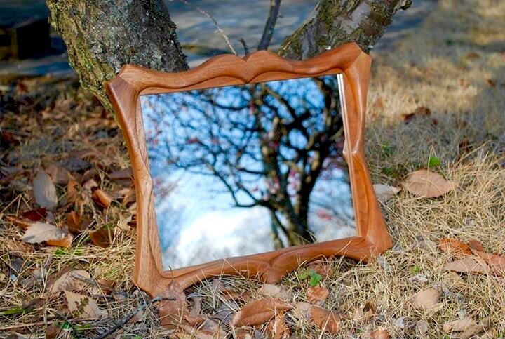 国産のクルミの木から作ったデザインミラー